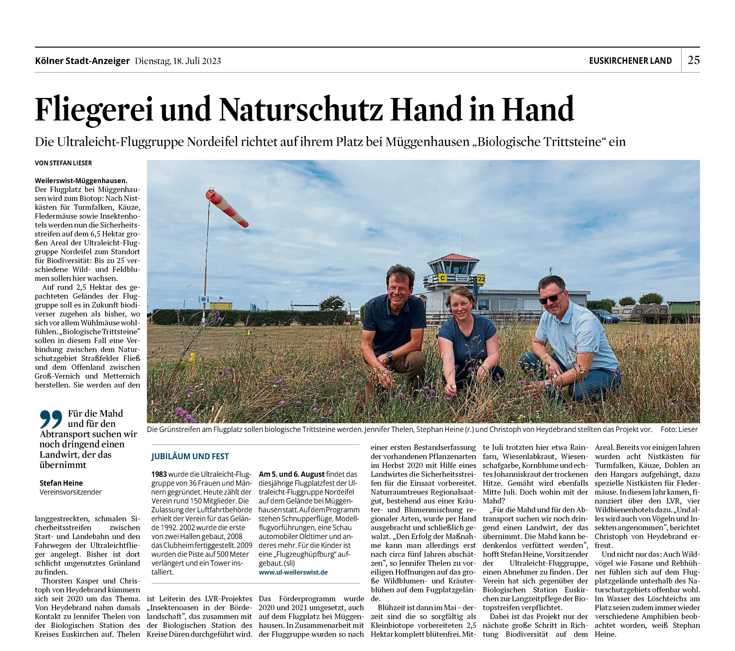 Mit unseren Naturschutzprojekten, die seit 2020 verstärkt durch Christoph von Heydebrand und Thorsten Kasper in Kooperation mit dem LVR vorangetrieben und betreut werden, haben wir mal wieder im positiven Sinn das Interesse der Presse geweckt. Am 18. Juli 2023 erschien der oben abgebildete Artikel im Kölner Stadt-Anzeiger. Hier gelangt...